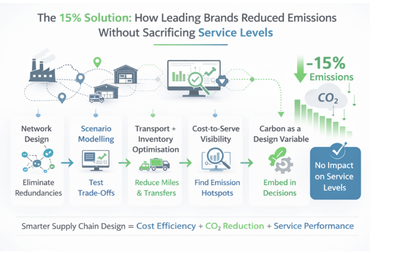At Lambda SCS, we’ve seen leading brands achieve double-digit emission reductions-often around 15%-through structured supply chain optimisation, without compromising service metrics. Here’s how.
